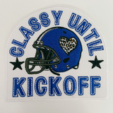 3.5" Classy Until Kickoff BLUE- Embroidered Hat Patch (3.5"w X 3.25"h): QTY 1