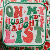 3" On My Husbands Naughty List - Embroidered Hat Patch