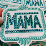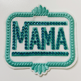 3" Teal MAMA with Rhinestones - Embroidered Hat Patch