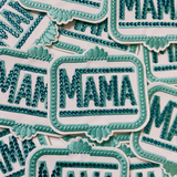 3" Teal MAMA with Rhinestones - Embroidered Hat Patch: 4" Embroidered Patch