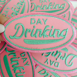 4" Day Drinking in Pink and Teal - Embroidered Hat Patch (Version 2)
