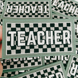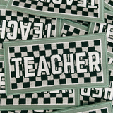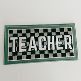 4" UNISEX TEACHER Gray & Black Checkered - Embroidered Hat Patch