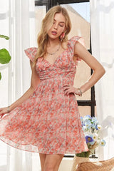 ADORA Watercolor Flower Shirred Tiered Ruffled Dress