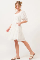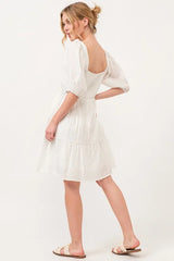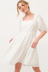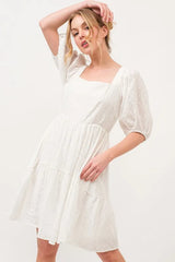 And The Why Square Neck Puff Sleeve Tiered Mini Dress