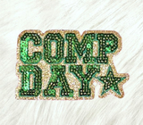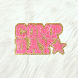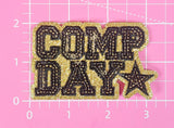 COMP DAY Cheer Dance Sequin on Glitter Small Iron-on Patch: White