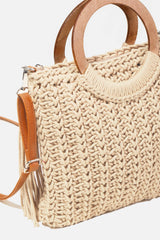 Fame Crochet Knit Convertible Tote Bag with Tassel