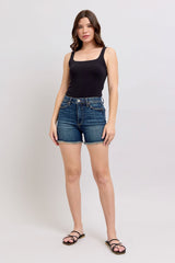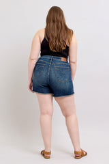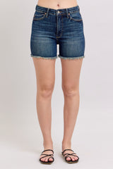 Judy Blue Tummy Control Fray Hem & Shield Back Pockets Denim Shorts
