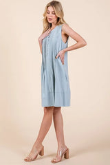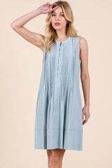 Lime 'N' Chili Denim Pintuck Detail Sleeveless Midi Dress
