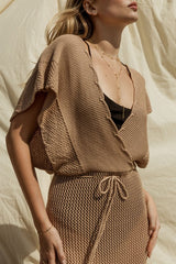 The open sweater cover-up dress is a versatile and stylish piece that can effortlessly elevate your look. With its open-front design and sweater-like material, it offers both warmth and style. Whether you're heading to the beach or a casual outing, this cover-up dress provides a relaxed yet chic vibe. Layer it over your favorite swimsuit for a day at the beach or pair it with jeans and a tank top for a casual day out.