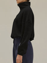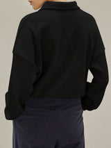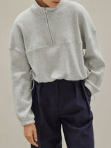 Waffle Knit Drawstring Half Zip Long Sleeve Sweatshirt