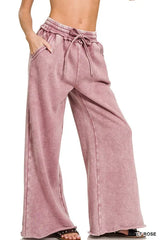 Zenana Acid Wash Fleece Palazzo Sweatpants with Pockets