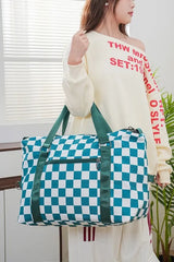 The Checkered Multi-Pocket Travel Bag is a stylish and functional accessory designed for travelers on the go. Featuring a trendy checkered pattern, this bag adds a touch of fashion to your travel ensemble. It is equipped with multiple pockets of various sizes, allowing you to organize and store your belongings efficiently. The spacious interior provides ample room for clothes, shoes, toiletries, and other essentials needed for a trip. With its durable construction and adjustable straps, this travel bag is both practical and comfortable to carry. Stay organized and stylish on your next adventure with the Checkered Multi-Pocket Travel Bag.