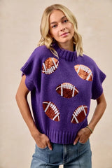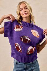 BiBi Gameday Sequin Football Patches Rib Banded Sweater