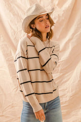 SO ME Stripe Crew Neck Basic Essential Sweater