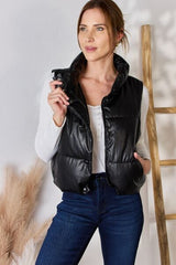 Love Tree Faux Leather Snap and Zip Closure Vest Coat