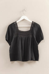 HYFVE Crochet Detail Puff Sleeve Peasant Top