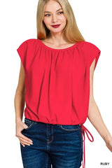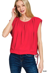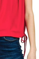 Zenana Woven Drawstring Tie Side Sleeveless Top