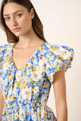 Mittoshop Floral V-Neck Cap Sleeve Mini Dress