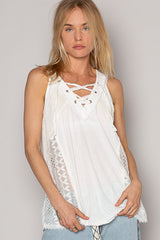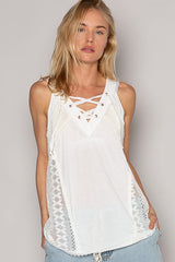 The Lace-Up Crochet Lace Tank is a chic and feminine top with intricate crochet lace detailing. The lace-up design adds a trendy and stylish element to this classic tank silhouette. Perfect for pairing with jeans, shorts, or skirts for a versatile and stylish outfit. Ideal for adding a touch of bohemian flair to your summer wardrobe.