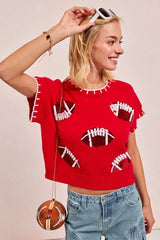 BiBi Gameday Sequin Football Embroidered Stitch Sweater