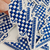 3” Checkered Lightning Blue & White - Embroidered Hat Patch: Embroidered Patch
